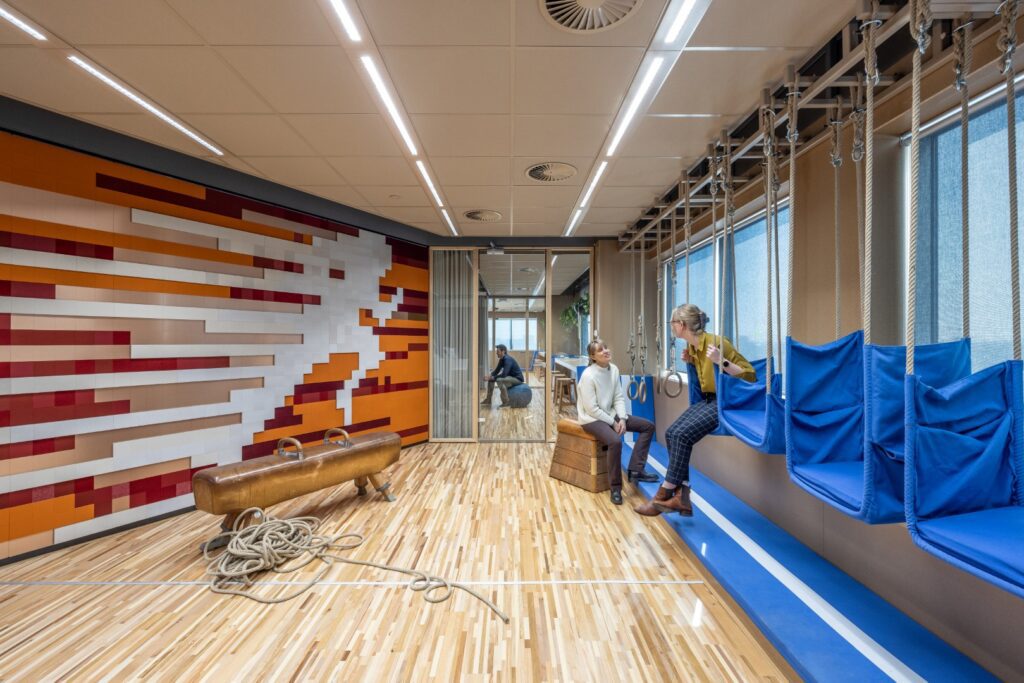 Restmateriaal dat anders zou worden afgeschreven, vormt bij Nationale Nederlanden de basis voor opvallende, gekleurde wanden met een modulair mozaïekpatroon. Gielissen Interiors realiseerde deze eyecatchers in de kantoren in Rotterdam en Den Haag, met circulariteit en zero-waste als uitgangspunt. Bekijk het project in het fotoalbum.