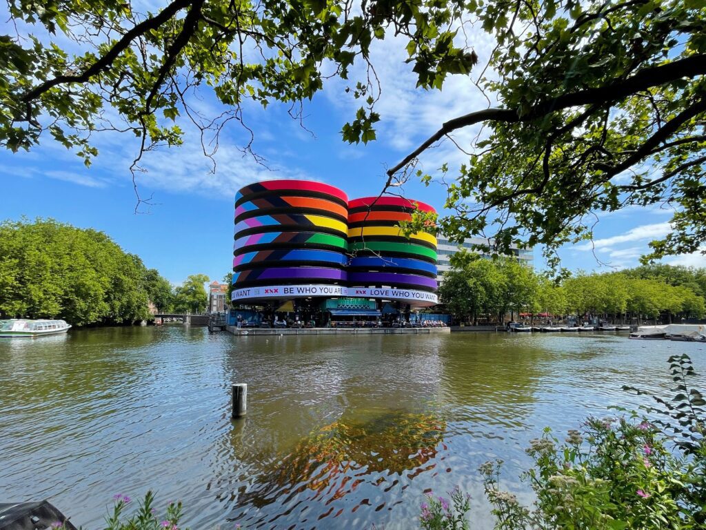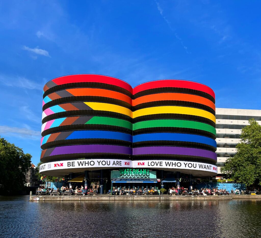 Opdracht was om de grootste pridevlag te realiseren op een zeer druk bezochte en visueel aantrekkelijke locatie. High visibility, meerdere jaren te gebruiken en met een beperkt budget. De Q-Park parkeergarage aan de Marnixstraat is volledig gehuld in de kleuren van de Progress Pride vlag en heeft een afmeting van maar liefst 82 bij 18 meter. Initiatiefnemer is de eigenaar van café Waterkant Amsterdam dat gelegen is onder de parkeergarage. “Hoe groter de vlag, hoe krachtiger de boodschap!”