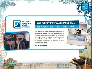 Fespa heeft ‘Acht Stappen naar Innovatie' opgenomen in pocketgidsje voor bezoekers aan Fespa 2010 in München (26 juni). Hierin ook details van het uitgebreide Fespa Innovate! programma tijdens de beurs. De acht stappen zijn tevens uitgangspunt voor een workshop tijdens deze Fespa show.
