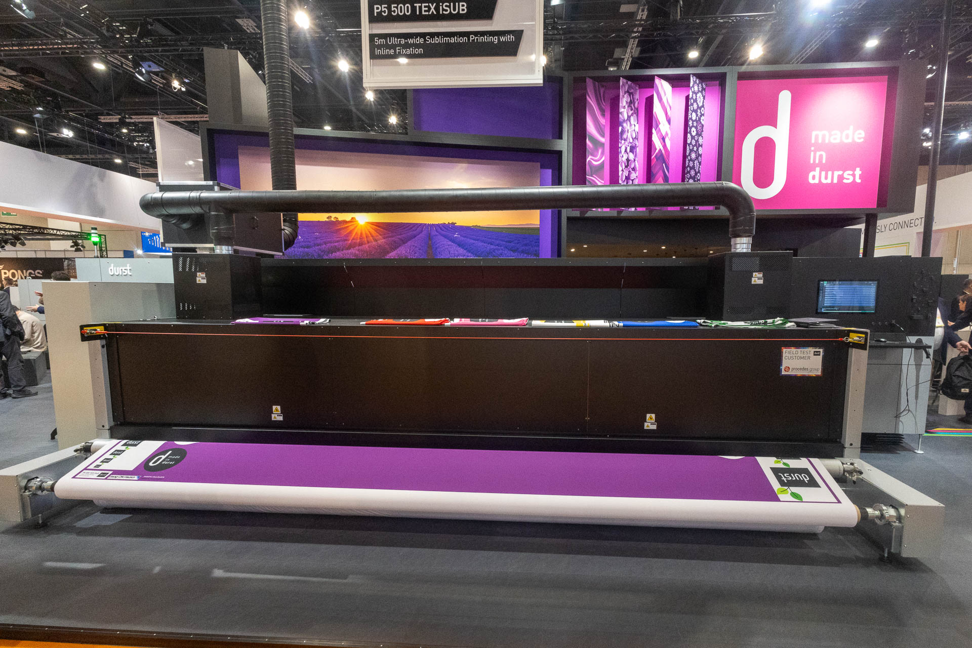 De P5 X heeft, sinds de eerste aankondiging in december 2024, upgrades gekregen die ervoor zorgen dat de printkwaliteit over het geheel genomen een nog hoger niveau bereikt. Op de stand staat ook de nieuwe P5 TEX ISUB, een printer voor directe textieldruk waarbij aansluitend inline wordt gefixeerd en dus het achteraf door de kalander halen vervalt. Durst Group voltooide de afgelopen tijd ook de overname van Aleph. Hun printers verschijnen nu onder het P5 LF-label in de kleuren van Durst.