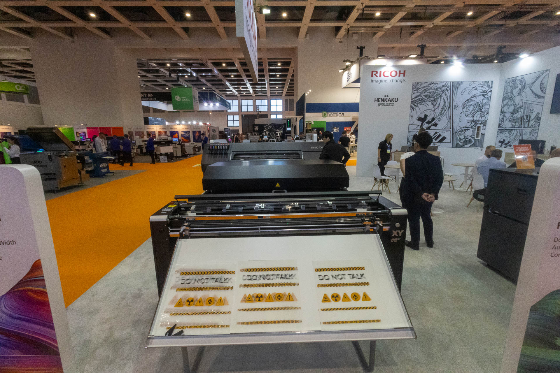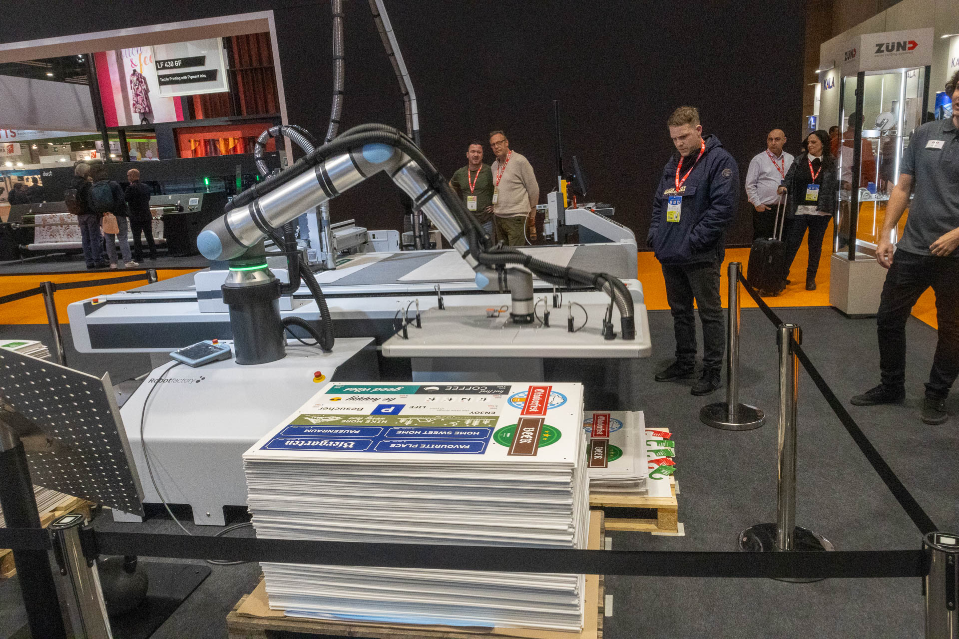 Wat de persconferenties betreft, trapte Durst Group in de ochtend het spits af. Een deel van het nieuws meldden we al eerder. Na een introductie met aandacht voor deze recente ontwikkelingen kregen we een rondleiding langs de verschillende machines op de stand, die ook de ontwikkeling weerspiegelt die het bedrijf doormaakt. Applicaties krijgen hier meer dan voorheen een podium, wat zorgt voor meer kleur tussen de getoonde printers.