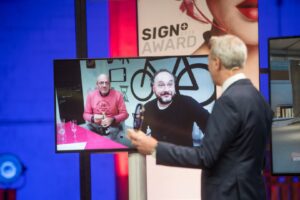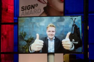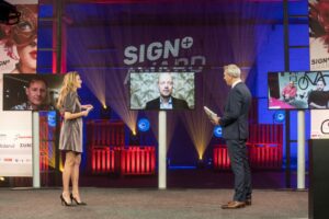 De Sign+ Award 2020, een initiatief van het vakblad Sign+ Magazine, is vrijdag 6 november uitgereikt tijdens een speciaal evenement vanuit Industrial Studios in Arnhem, met alle genomineerden per Zoom live aanwezig op afstand. Het uitreikingsevent kon via livestream worden gevolgd door andere inzenders, sponsoren en geïnteresseerden. Deze uitzending is nog steeds te bekijken, voor wie het gemist heeft.