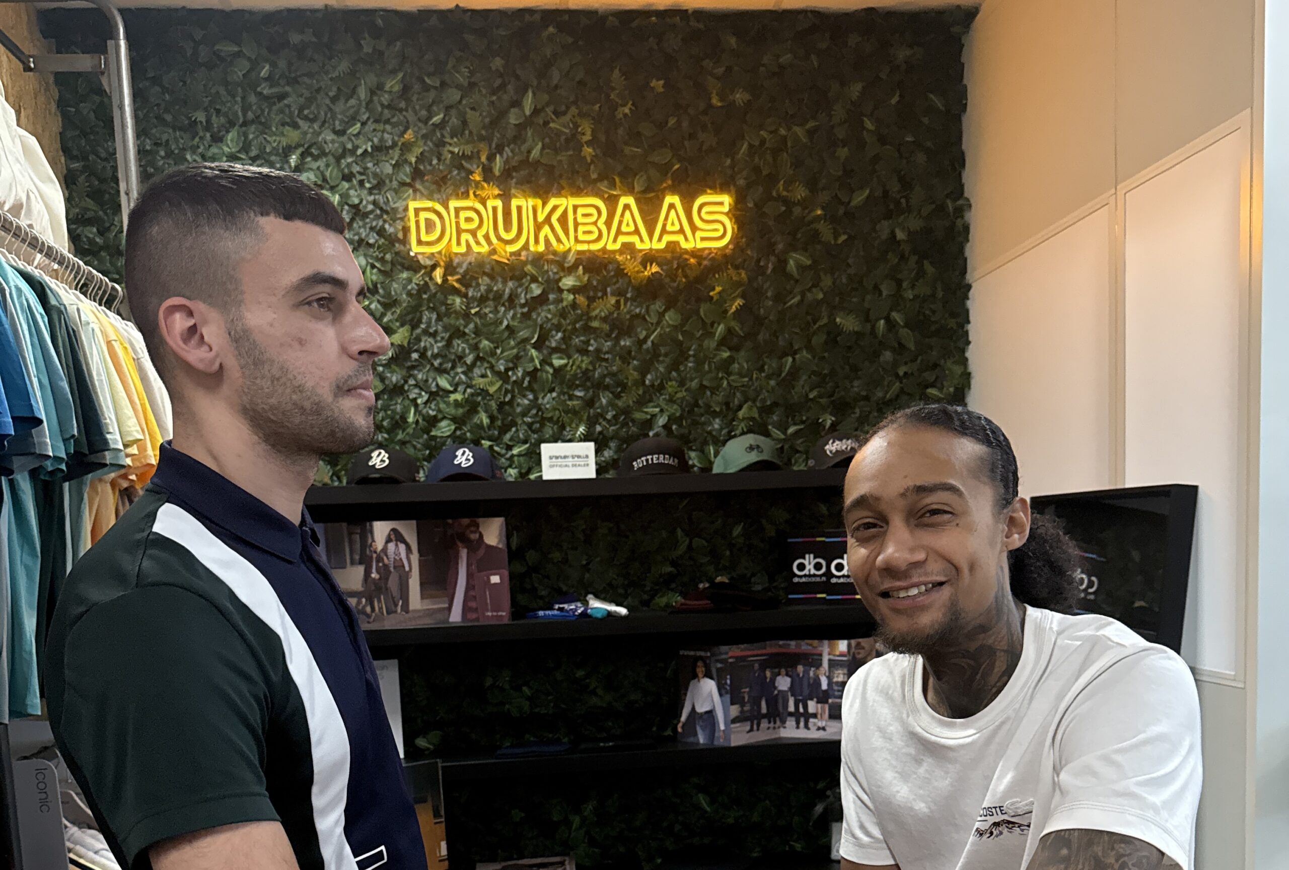 De één (Yassine) is geboren in Rotterdam-Zuid, de ander (Ky-mani) in Rotterdam-West. Deels verouderde en verarmde buurten waar de criminaliteit en het ‘snelle’ geld lonkt. Zo verging het ook Yassine (27) en Ky-mani (28). Na een jeugd vol foute keuzes (woninginbraken, overvallen, vuurwapen- en drugshandel en geweldsdelicten) die leidden tot verschillende verblijven in huizen van bewaring, proberen ze nu hun leven op orde te krijgen. Dankzij Bon Sjans, een organisatie die mensen intensief begeleidt die graag praktisch bezig zijn, kwamen ze terecht bij Drukbaas, specialist in gepersonaliseerde bedrukte en geborduurde (bedrijfs)kleding. Een proces van vallen en opstaan, met een enkelband om.