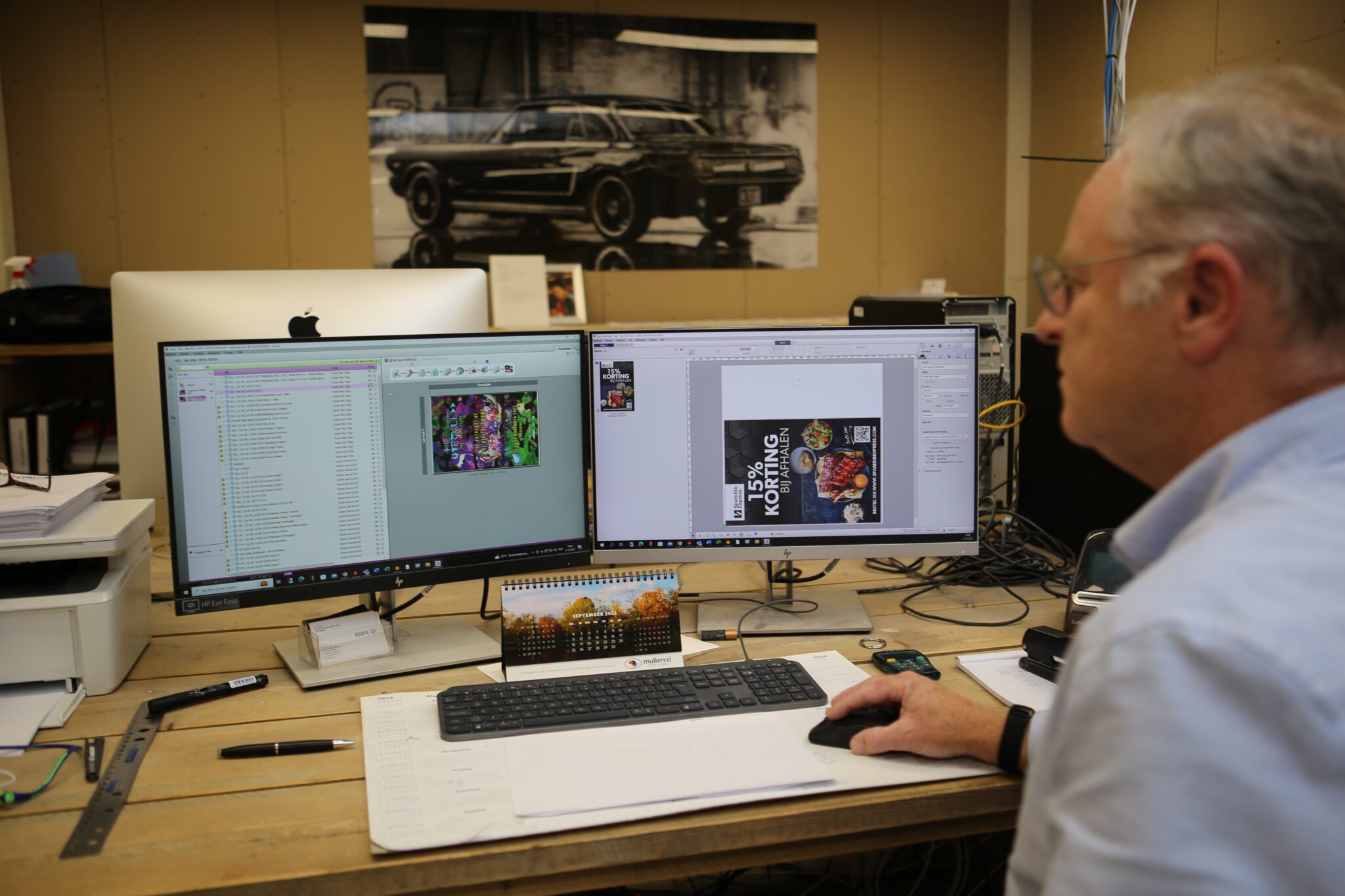 Pol heeft nog even overwogen om de Tauro in te zetten met tafels, in combinatie met robots, om zo losse vellen te kunnen printen. Maar dat zou extra investeringen qua huisvesting vergen, omdat de hoogte van de productieruimte dit niet toelaat. “We onderzoeken nu de mogelijkheden om de machine in de toekomst via jumborollen te voeden. Dat scheelt in de papierkosten en je kunt nog makkelijker overnight printen. We hebben al geïnvesteerd in een tweede Fotoba-snijmachine en binnenkort komen ook twee automatische stackers die het gesneden papier dan opvangen.”