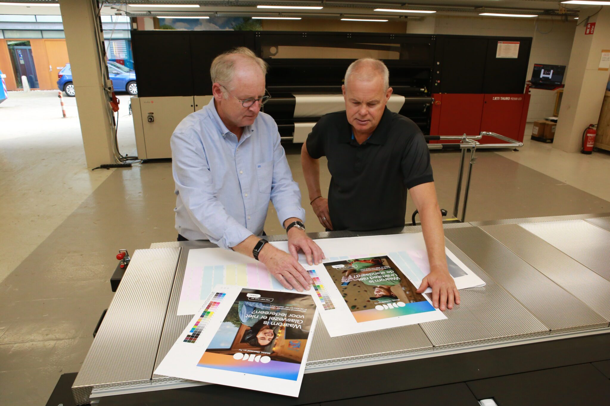Al snel werd omgekeken naar een tweede digitale printer bij huisleverancier Agfa. “We hadden al een relatie met Agfa vanuit de offsetkant. De service is altijd perfect en dat maken ze bij digitaal printen ook waar.” Al langer stond een Tauro H2500 van Agfa op het verlanglijstje, maar aanvankelijk was deze machine een maatje te groot. “De ontwikkeling van de digitale out-of-homemarkt gaat echter zo snel, dat er in print steeds vaker lokale campagnes worden opgezet. En campagnes waarbij verschillende beelden worden gebruikt. Vorige week nog hadden we een campagne van 194 exemplaren in 19 verschillende versies. Daar hoef je met offset niet aan te beginnen. En als het wat rustiger is op het gebied van buitenreclame dan zie je juist veel last minute sales vanuit de abri-exploitanten. Die vraag kunnen wij met onze digitale machines perfect invullen. Temeer daar het omslagpunt voor offset, door de komst van de Tauro afgelopen september, verder omhoog is geschoven.”