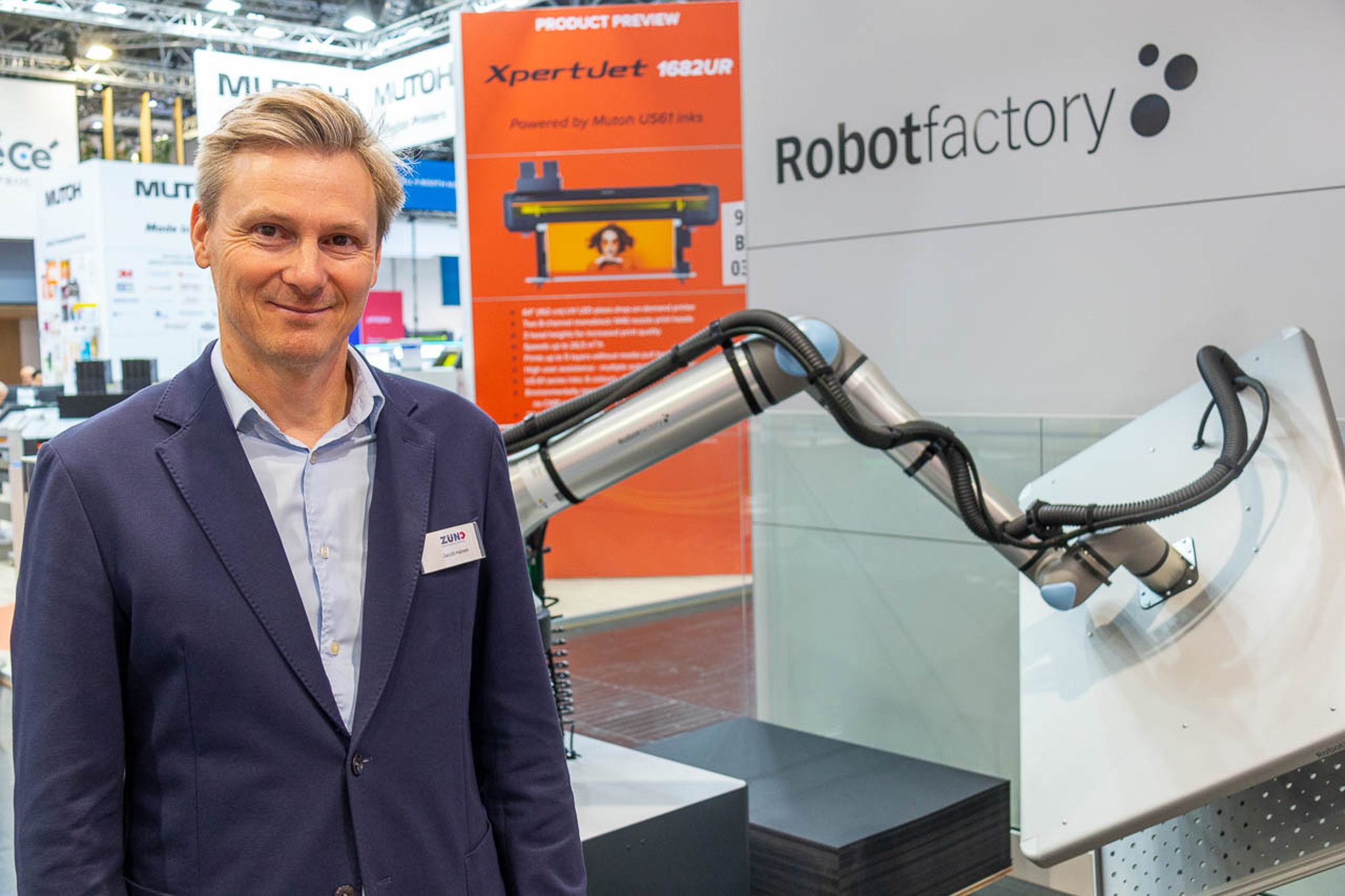 Bij de ontwikkeling werkt Hansen samen met Zünd in Zwitserland. Hansen: “De afgelopen anderhalf jaar is die samenwerking in een stroomversnelling gekomen. Waar we ons eerst richtten op afnemers in de Nordics, nemen de verschillende vestigingen van Zünd, waaronder Zünd Benelux, en dealers van Zünd nu ook ons productaanbod op in hun programma.” Bezoekers die eerder dit jaar de stand van Zünd op drupa bezochten, zagen daar cobots van Robotfactory aan het werk. Hansen was er zelf aanwezig om toelichting te geven over het aanbod.