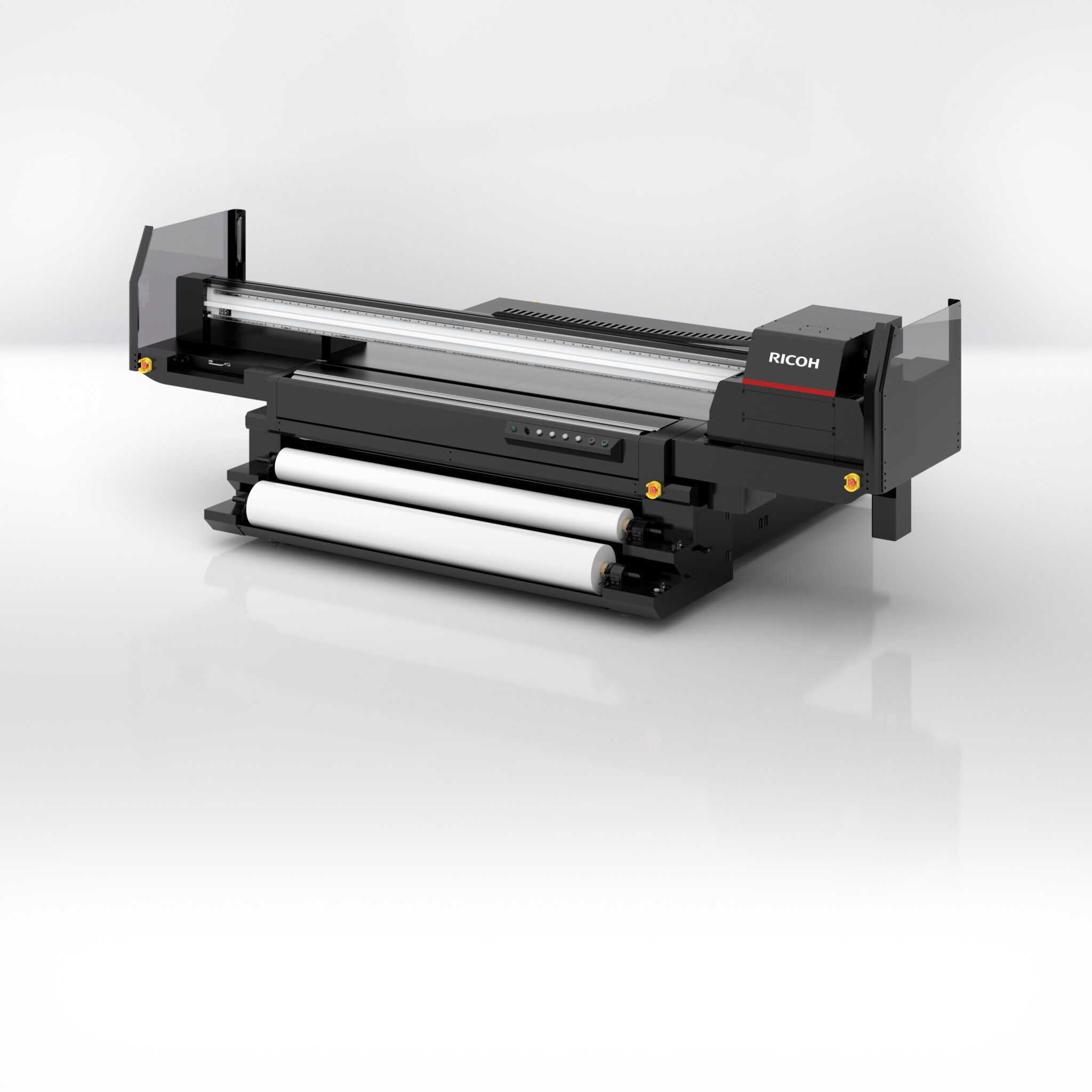Gloednieuw op de Fespa-beurs is de eerste hybride printer van Ricoh die gebaseerd is op digitale technologie van Flora. Flora is een toonaangevende fabrikant van vlakbedprinters en grootformaat digitale inkjetprinters. Het systeem is speciaal ontwikkeld om zowel harde als flexibele media te bedrukken. Dit biedt sign- en displayspecialisten grotere productieflexibiliteit.