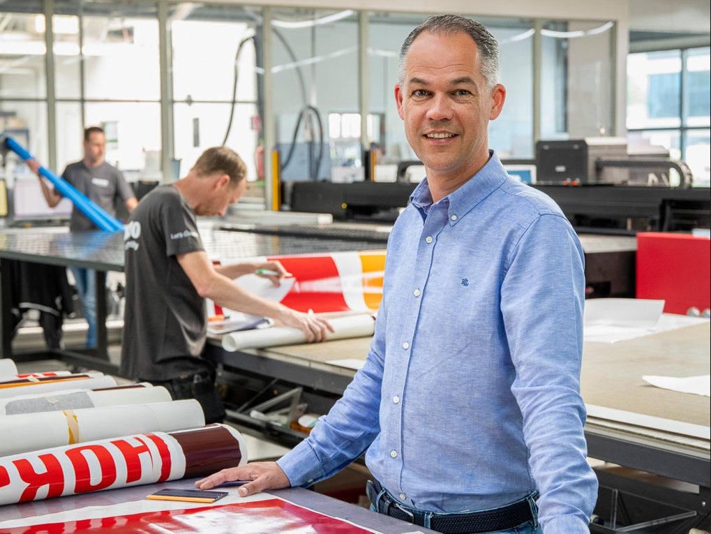 Ooit begonnen als kleine textieldrukkerij in Haarlem is Inpromo in ruim twintig jaar tijd uitgegroeid tot een full service signbedrijf gevestigd in Beverwijk (zie kader). Sinds 2022 staat daar Maarten van der Velden (47) aan het roer. Een algemeen directeur met een duidelijke visie op ondernemen. “Er komt een nieuwe generatie klanten op ons af. Die verwacht een andere vorm van samenwerking en daar moet je als bedrijf op voorsorteren.” Het inrichten van een nieuw e-commerce platform voor Inpromo is een eerste stap, maar daar blijft het niet bij als het aan Van der Velden ligt.
