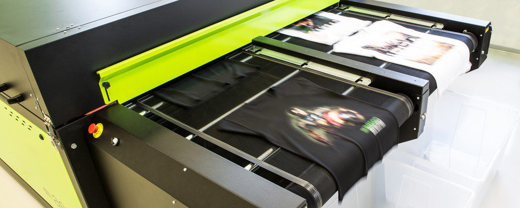 Deze Aeoon PTB pre-treatment unit is een oplossing om de productiesnelheid van Direct-To-Garment printers bij te houden. De machine is voorzien van een transportband, zodat de unit direct voor een droogtunnel kan worden geplaatst en het textiel meteen kan worden gedroogd.