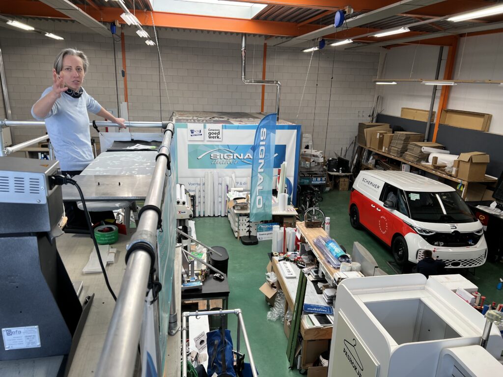 Signalo is een signbedrijf dat al ruim dertig jaar actief is. Het verzorgt voertuigreclame en wrapping, graveerwerk, brengt glasfolie (ook warmtewerend) aan, maakt banners en reclameborden en produceert stickers. Brenda Volkers is nu vijf jaar ‘eindbaas’ van het bedrijf dat ze in 2018 overnam van haar bonusvader Bart van Silfhout. Hij was onbewust een inspirator. Toen ze als kind na schooltijd bij hem in de werkplaats kwam, zette hij haar achter de computer, liet zien waar ze leuke afbeeldingen kon vinden die ze dan mocht plotten. “Mijn kinderkamer hing daar helemaal vol mee”, vertelt ze. “Bart leerde mij ook al op jonge leeftijd met de machines en software omgaan.”