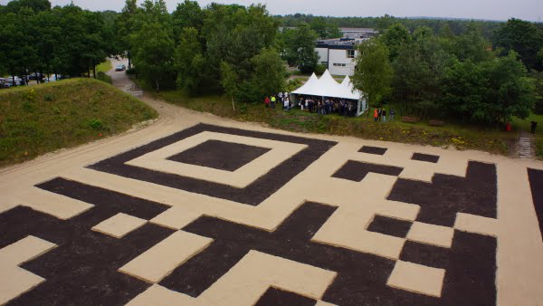 De QR-code is aangelegd op het terrein van IPC Groene Ruimte en is gerealiseerd door de leerlingen en trainers van specialisatie cultuurtechniek van de opleiding Groen Grond Infra. Aan dit project werd 28 dagen hard gewerkt door 34 vakmensen.