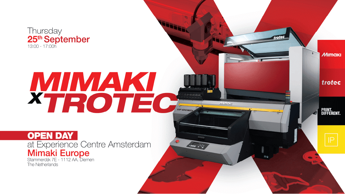 Mimaki en Trotec organiseren op 25 september 2025 een open huis in Europese showroom van Mimaki in Diemen. Centraal staat de combinatie van uv-printen en laseren.