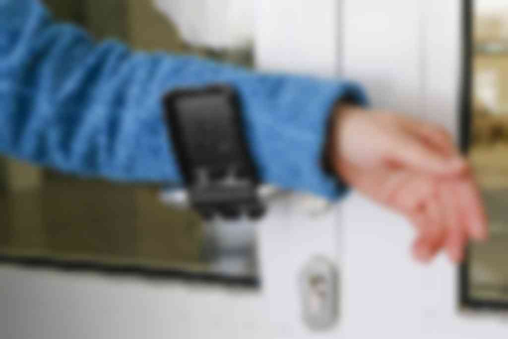 Voortaan geen handen meer gebruiken om deuren te openen en sluiten; een onderarm volstaat. Het is mogelijk met de door Mparts ontwikkelde ergonomische ‘handsfree’deuropener.
