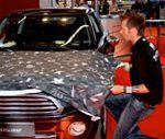 Zoals een demonstratie carwrapping. Voel en probeer de Hex-Press cast folie zelf onder begeleiding van een trainer. De nieuwe cast premiums uit de HX30000 serie worden gepresenteerd, waaronder alligator en pailletten look, diverse nieuwe kleuren carbonlook, variochrome en een brushed aluminium.