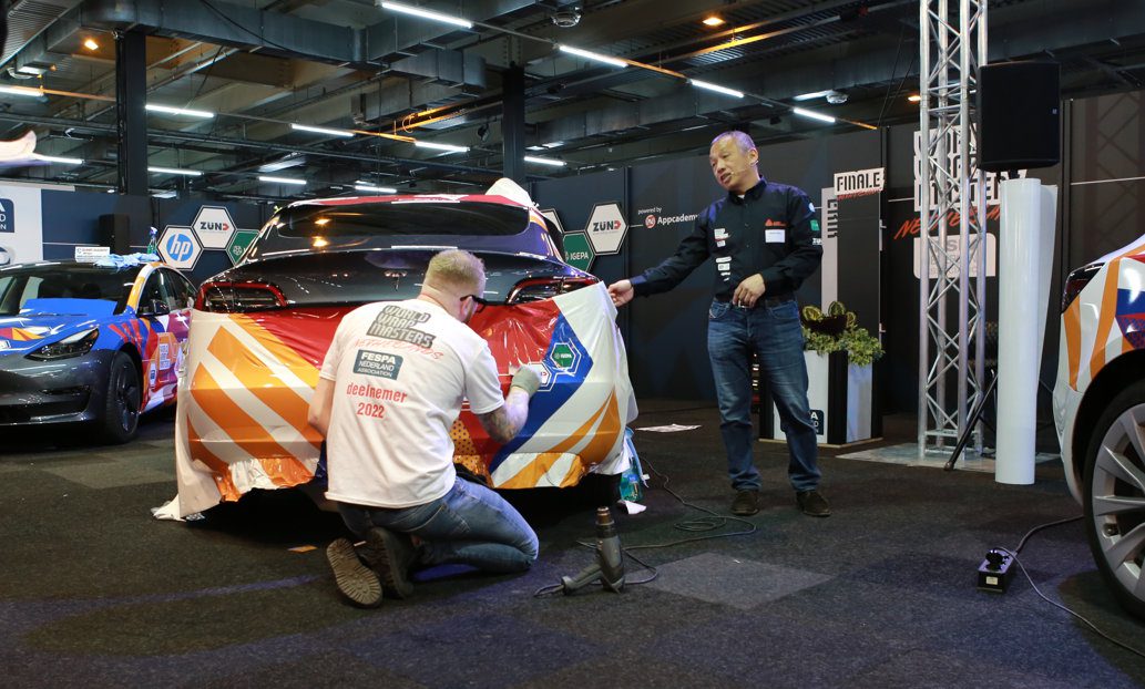 Deze eerste editie van de World Wrap Masters Netherlands was perfect georganiseerd door Fespa Nederland, in samenwerking met Appcademy, Omnimark, Van der Pol Reclame en Wrapmyride.nl. Omnimark-directeur Hwie-Bing Kwee vervulde de rol van ‘speaker’ en betrok gedurende de dag ook leken die stonden te kijken bij deze wrapcompetitie en deelde talloze weetjes en handige trucs.
