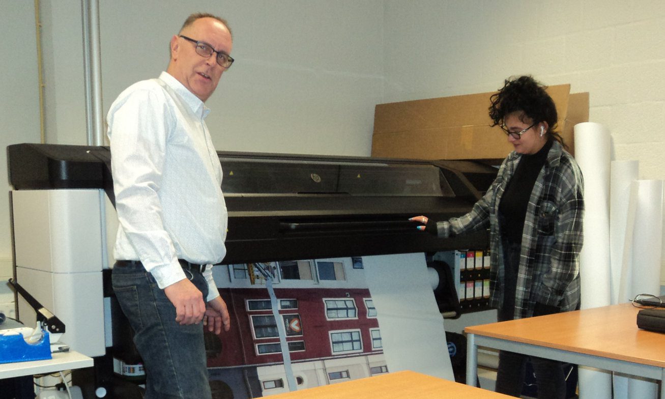 “De HP Latex 700 printer leent zich uitermate om in een klaslokaal te zetten omdat er geen oplosmiddelhoudende inkten aanwezig zijn. En de machine kan op veel verschillende substraten uit de voeten. Binnen ligt een ontwerp klaar om de lokalen van de bouwafdeling te restylen. We willen daar als schildersopleiding graag aan meehelpen en kunnen hiervoor nu ook deze behangprinter inzetten. Het uiteindelijke doel is om de student in opleiding kennis te laten maken met de printtechnieken die nu op de markt aanwezig zijn en ze te laten werken met wandgrote foto’s”, aldus Van der Veldt.