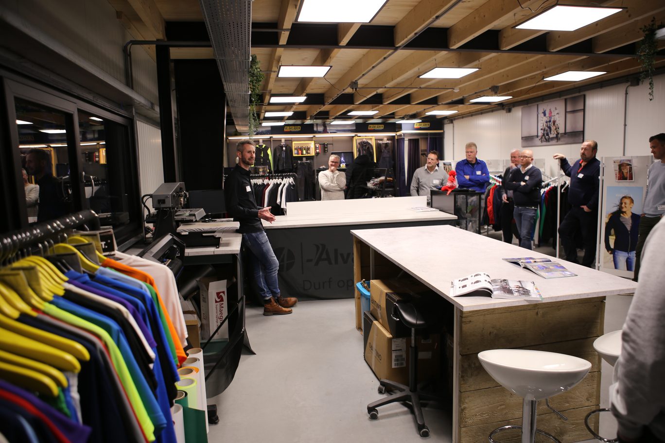 Opvallend en leerzaam voor velen was de filosofie achter de aanwezigheid van een showroom met een ruim assortiment werk- en promotionele kleding. Gerenommeerde merken als Blåkläder, JAKO en Santino hangen in de rekken. “Een tak die je er niet ‘even’ bij doet”, aldus Rousseau. Maar geef je deze discipline voldoende aandacht, dan is er volgens hem absoluut synergie met de rest van de activiteiten van het bedrijf.