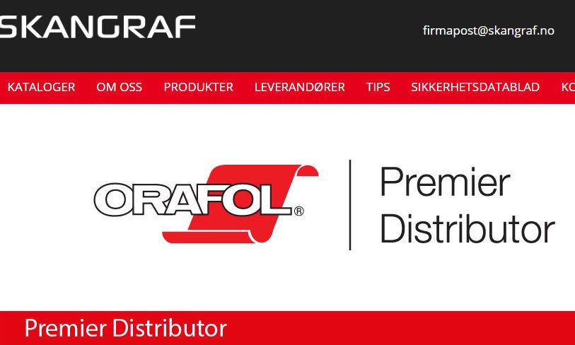 Skangraf is een vooraanstaande leverancier van rolmedia aan meer dan duizend klanten in Noorwegen, met een 23-jarige geschiedenis in de business. Het bedrijf is de enige geautoriseerde distributeur van Orafol zelfklevende materialen in Noorwegen. Skangraf’s productportfolio bevat ook materialen van R-Tape, Stahls, Dataplot, Lintec, ATgraphix, Georg + Otto Friedrich en Poli-Tape.
