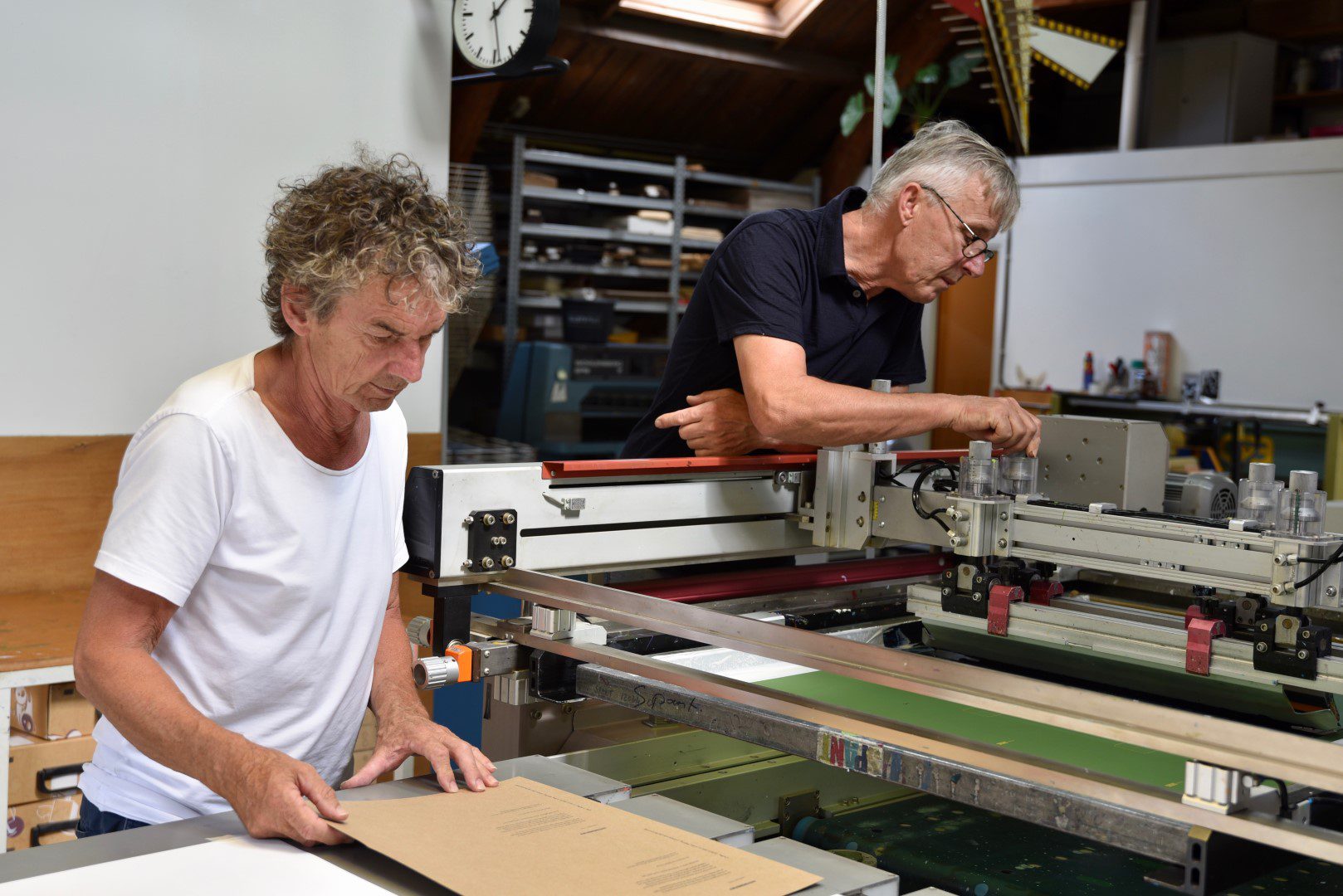 In een voormalige houtzagerij aan de Utrechtse Vecht, aan de rand van het centrum, voorzagen Sjaak Schuur en Rinus Siteur van Spant Zeefdruk de culturele sector in de Domstad jarenlang van posters en cd-hoesjes. “Duizenden affiches hebben we die eerste vijftien jaar gedrukt. Als ik na het werk naar huis fietste, zag ik overal onze posters hangen. De straten hingen er vol mee”, vertelt Schuur.