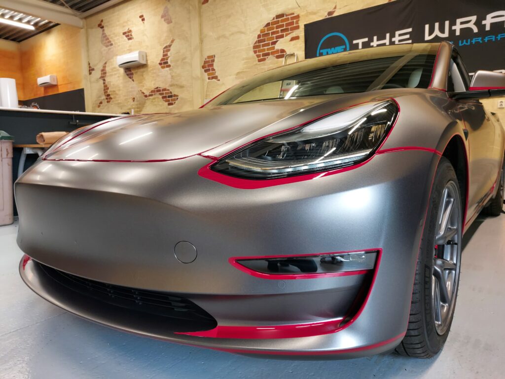 De tweede prijs, bestaande uit €500 aan materiaal, is voor Stickerland uit Rosmalen. Hier werd een Tesla 3 op een bijzondere manier gewrapt. De auto is volledig zilver gewrapt, behalve een aantal details, waar de oorspronkelijke rode kleur nog zichtbaar is. Er is hier maar liefst 150 meter knifeless tape gebruikt.