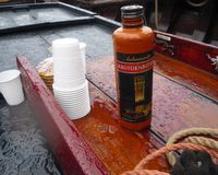Dat streven viel echter letterlijk in het water. Kruidenbitter en Beerenburg hield de sfeer er echter in en de bemanning warm. In het vooronder ging het netwerken gewoon door, terwijl de diehards de regen trotseerden. Vanwege het wegvallen van de wind zochten de meeste schepen op de motor de haven van Spakenburg op voor een lunch met scheepsbanket.