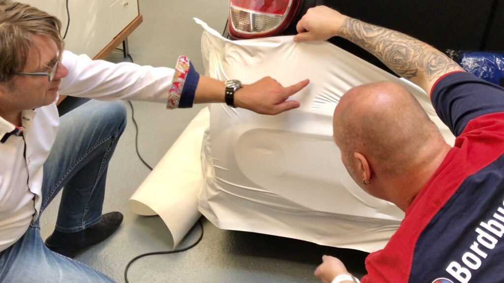 Carwrapfolies kun je (met warmte) fantastisch vervormen.